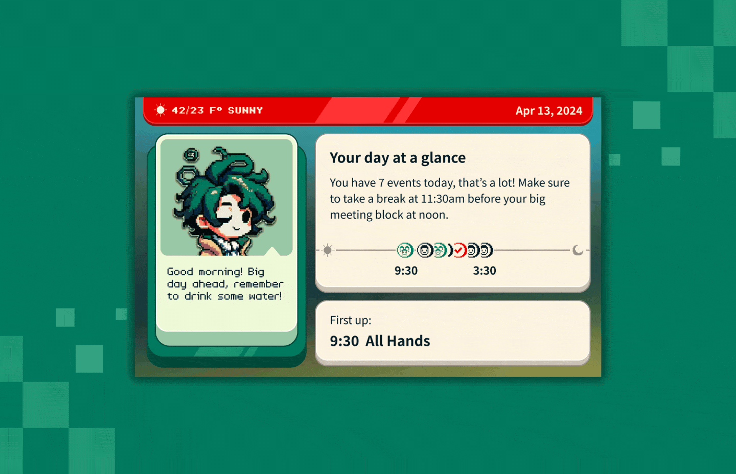 A sense of "how busy is my day today?" 🤔 - without the stressful 10 rows of calendar invites.